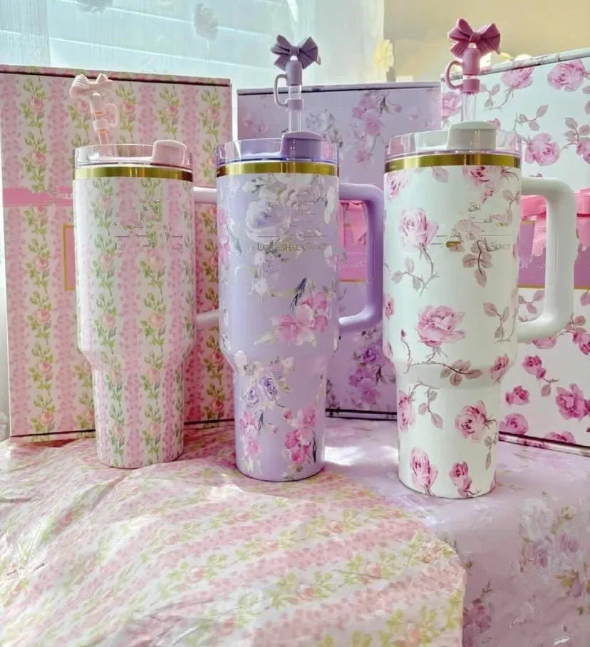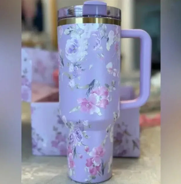 Sip in style with our Blossom Bloom Floral Tumbler, designed for beauty and function. Featuring a charming pastel pink base with a delicate floral pattern, this 40oz tumbler is perfect for keeping your drinks hot or cold for hours. Crafted with high-quality stainless steel, it’s double-wall insulated and includes a sturdy handle for easy carrying. The spill-proof lid and reusable straw make it ideal for both on-the-go hydration and cozy desk days. Whether you're heading to work, the gym, or just relaxing at home, this tumbler adds a touch of elegance to your routine.